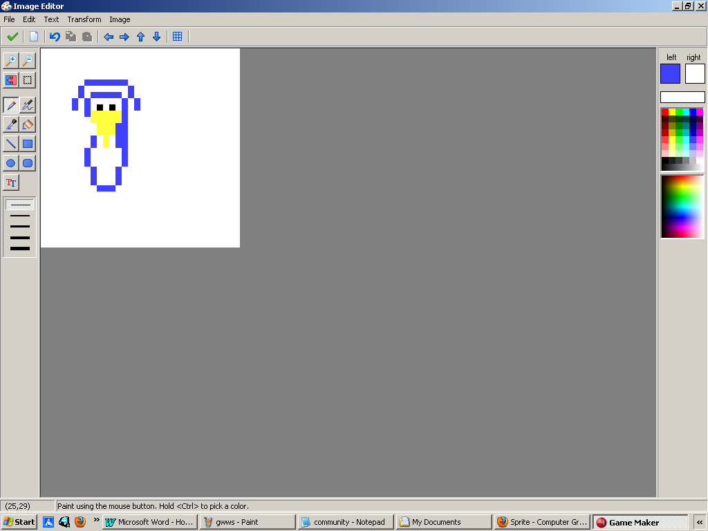 The term sprite can be applied more loosely to mean any 2D graphic drawn on a computer, also known as Pixel Art.